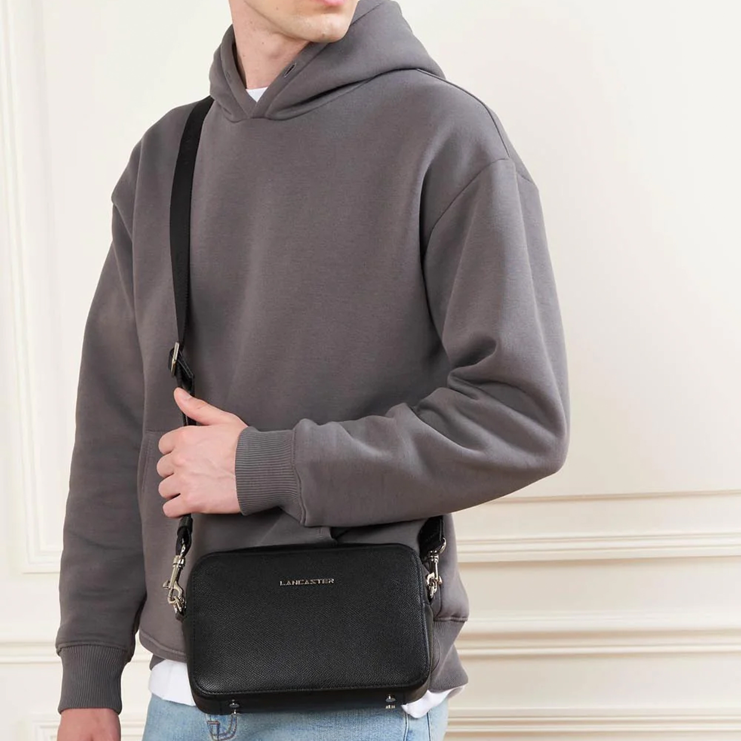 LANCASTER Geantă bărbați neagră Delphino Lucas