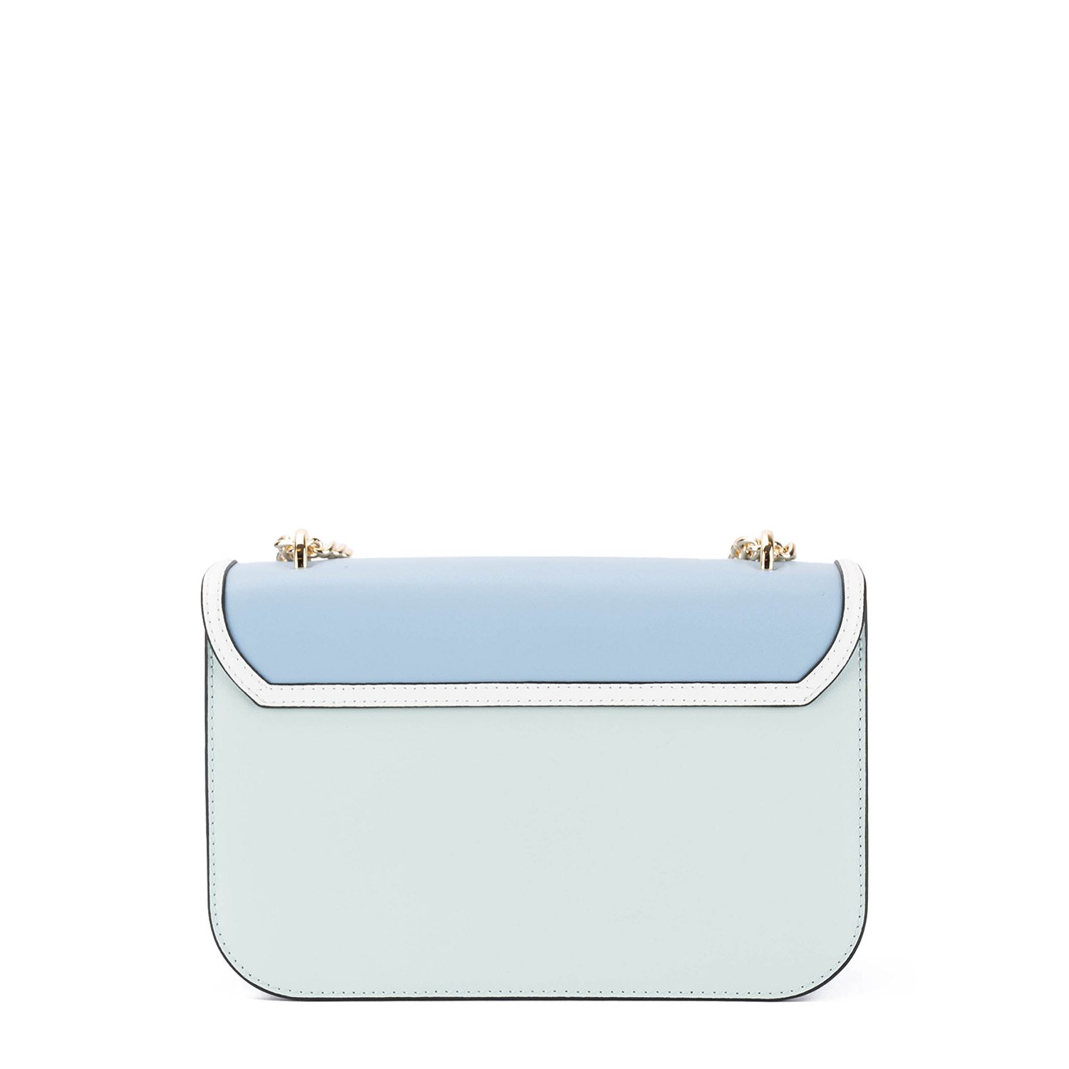 Geantă elegantă, realizată din piele netedă, cu o formă compactă și un design distinctiv. Modelul dispune de o închidere metalică decorativă de tip turn-lock și o baretă tip lanț, care oferă un accent sofisticat și luxos.
