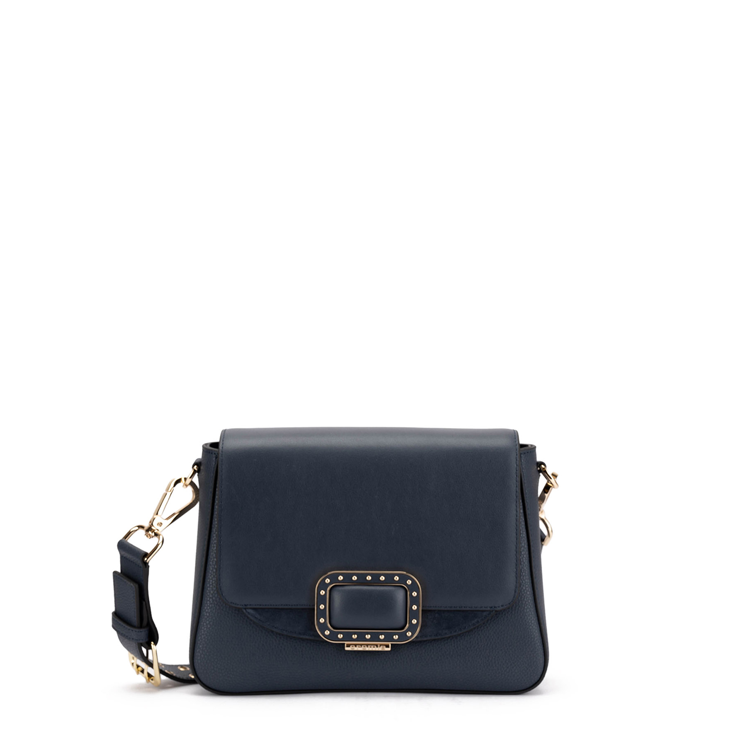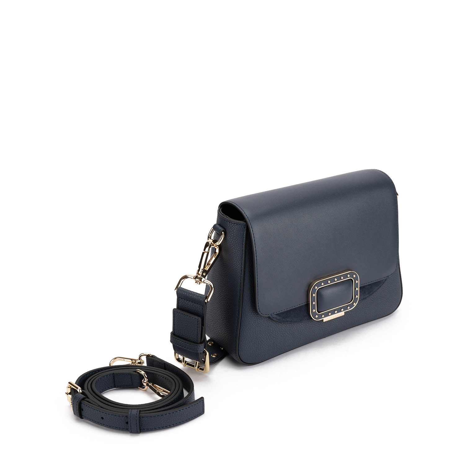 - Clapetă din piele netedă cu detalii din nubuc