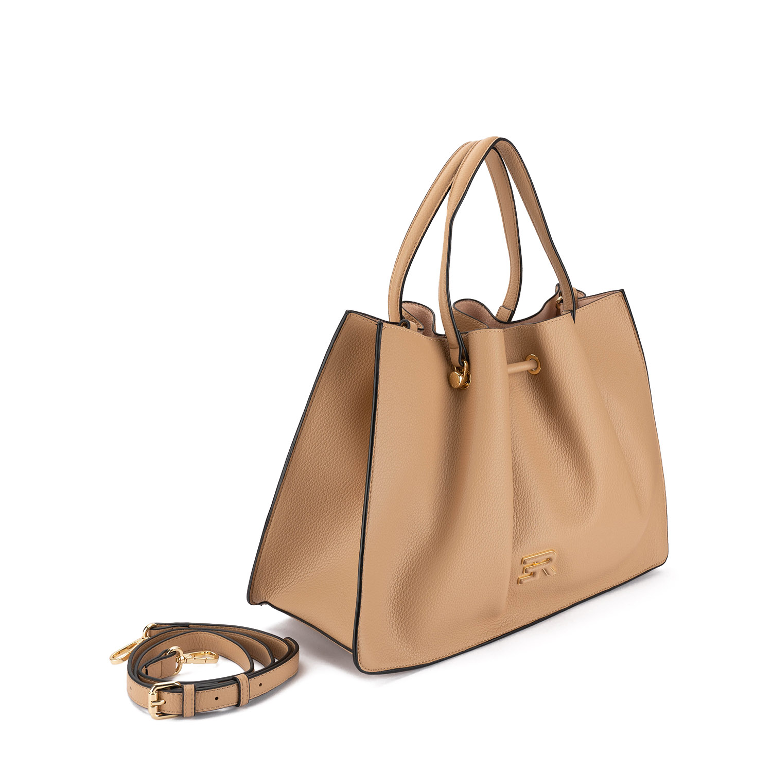 Geantă de damă Anora în culoare bej stilat, confecționată din piele ecologică texturată (șagrin). Model elegant și minimalist, cu mânere confortabile și baretă lungă suplimentară pentru un plus de confort. Logo-ul mărcii pentru un finisaj stilat.