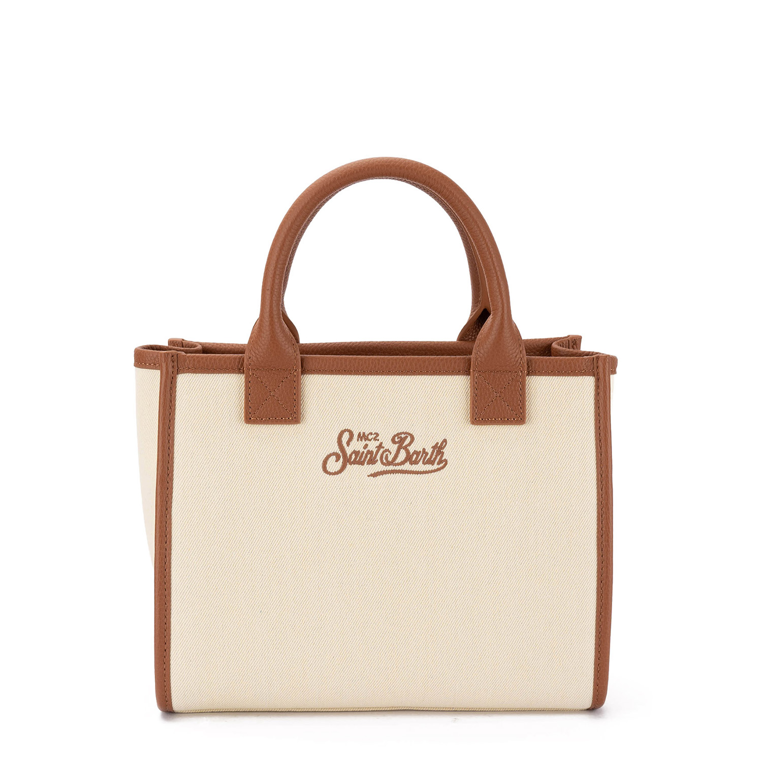 Geantă stilată și fresh, fabricată din material textil cu margini elegante din piele. Dispune de mânere din piele maro. Dimensiunea compactă o face ideală pentru utilizarea zilnică, iar bareta lungă reglabilă inclusă permite purtarea atât în mână, cât și pe umăr. Finisată cu un logo contrastant brodat.