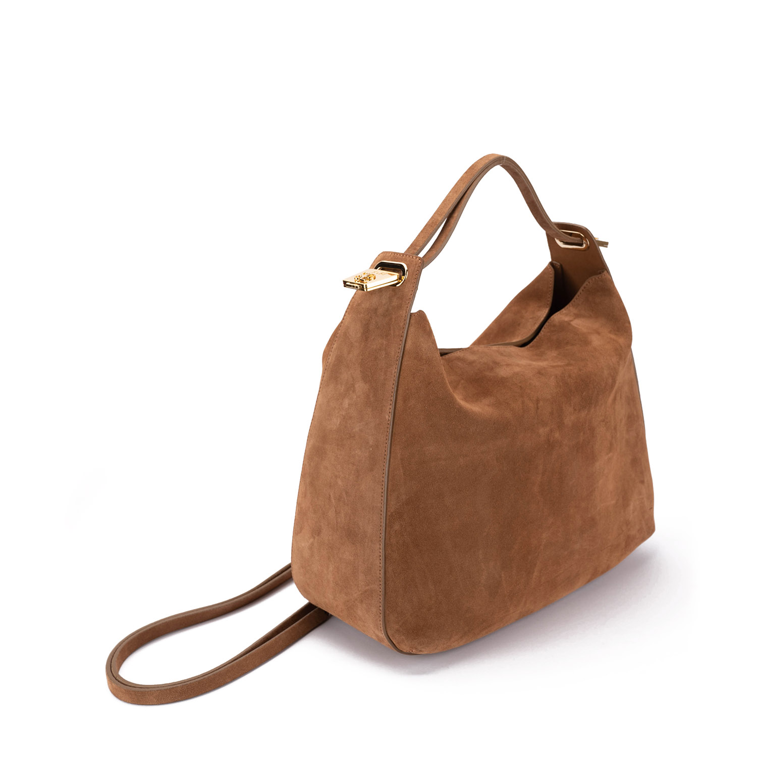 Geantă de damă frumoasă din piele întoarsă, cu un design minimalist. Dispune de un accent metalic stilat cu logo-ul brandului. Potrivită atât pentru utilizarea zilnică, cât și pentru ocazii mai speciale. Modelul are un mâner scurt reglabil și o a doua curea mai lungă, pentru diferite moduri de purtare, precum și un buzunar interior cu fermoar pentru o organizare practică.