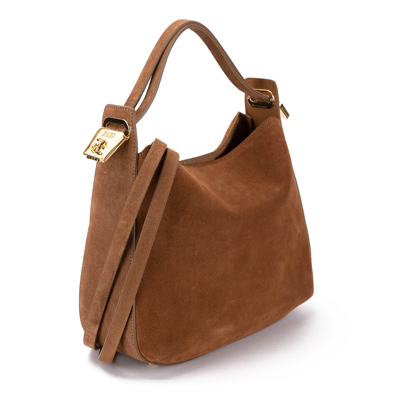 Geantă de damă frumoasă din piele întoarsă, cu un design minimalist. Dispune de un accent metalic stilat cu logo-ul brandului. Potrivită atât pentru utilizarea zilnică, cât și pentru ocazii mai speciale. Modelul are un mâner scurt reglabil și o a doua curea mai lungă, pentru diferite moduri de purtare, precum și un buzunar interior cu fermoar pentru o organizare practică.