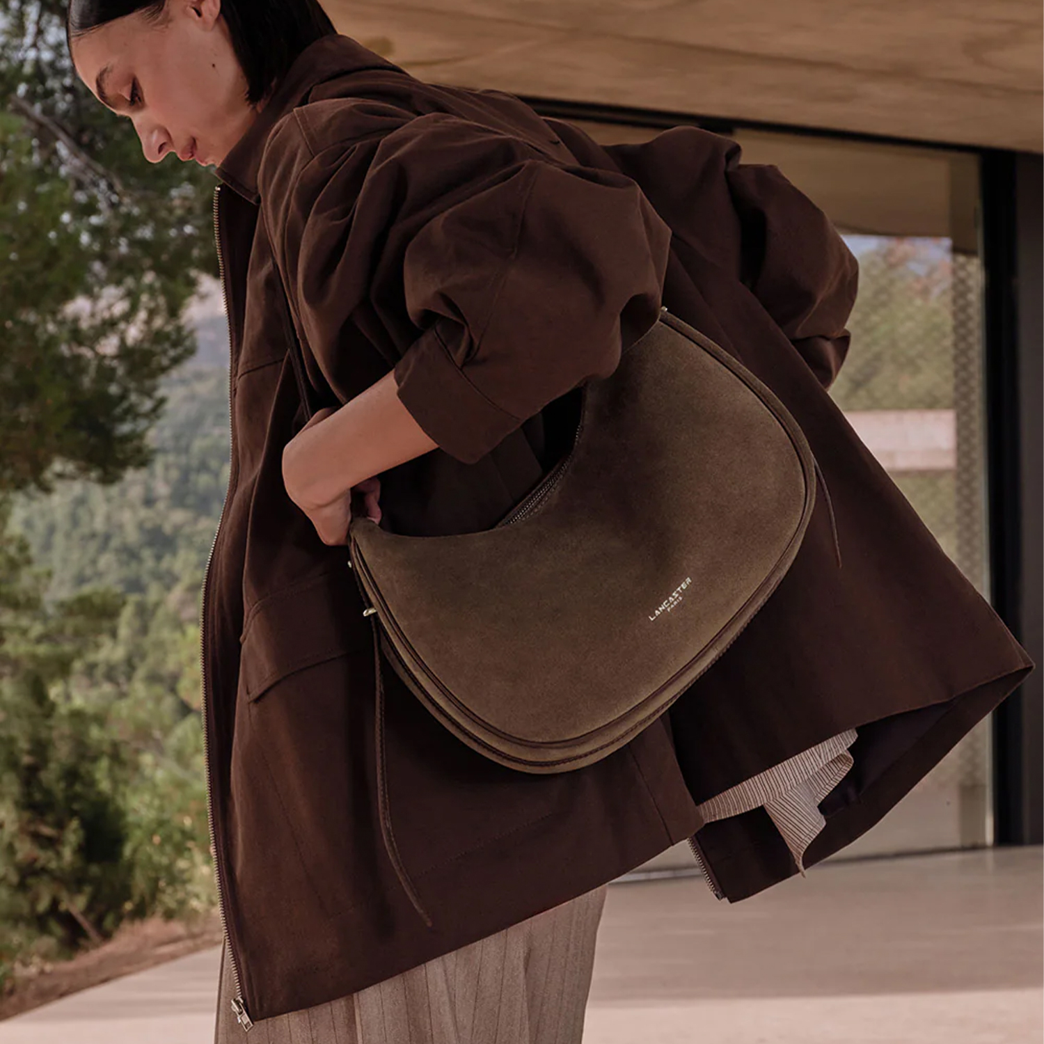 LANCASTER Geantă damă maro Suède