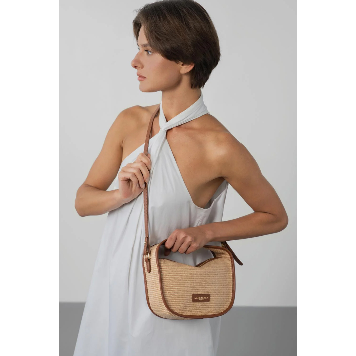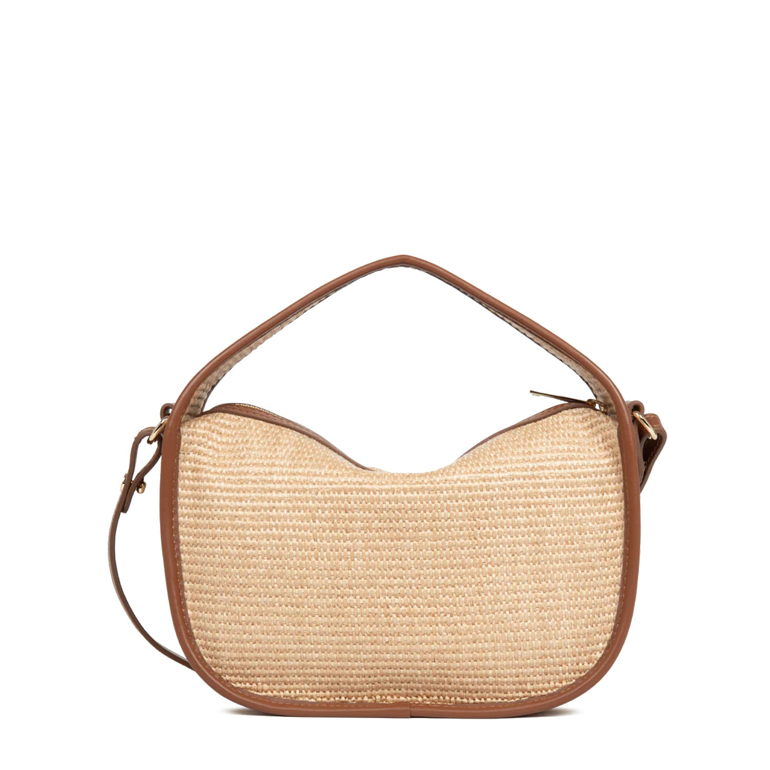 Geantă compactă de damă, realizată din rafia cu detalii din piele naturală de vițel. Modelul dispune de o curea reglabilă și detașabilă, precum și de un mâner scurt. Buzunare interioare cu și fără fermoar, pentru o organizare ușoară.