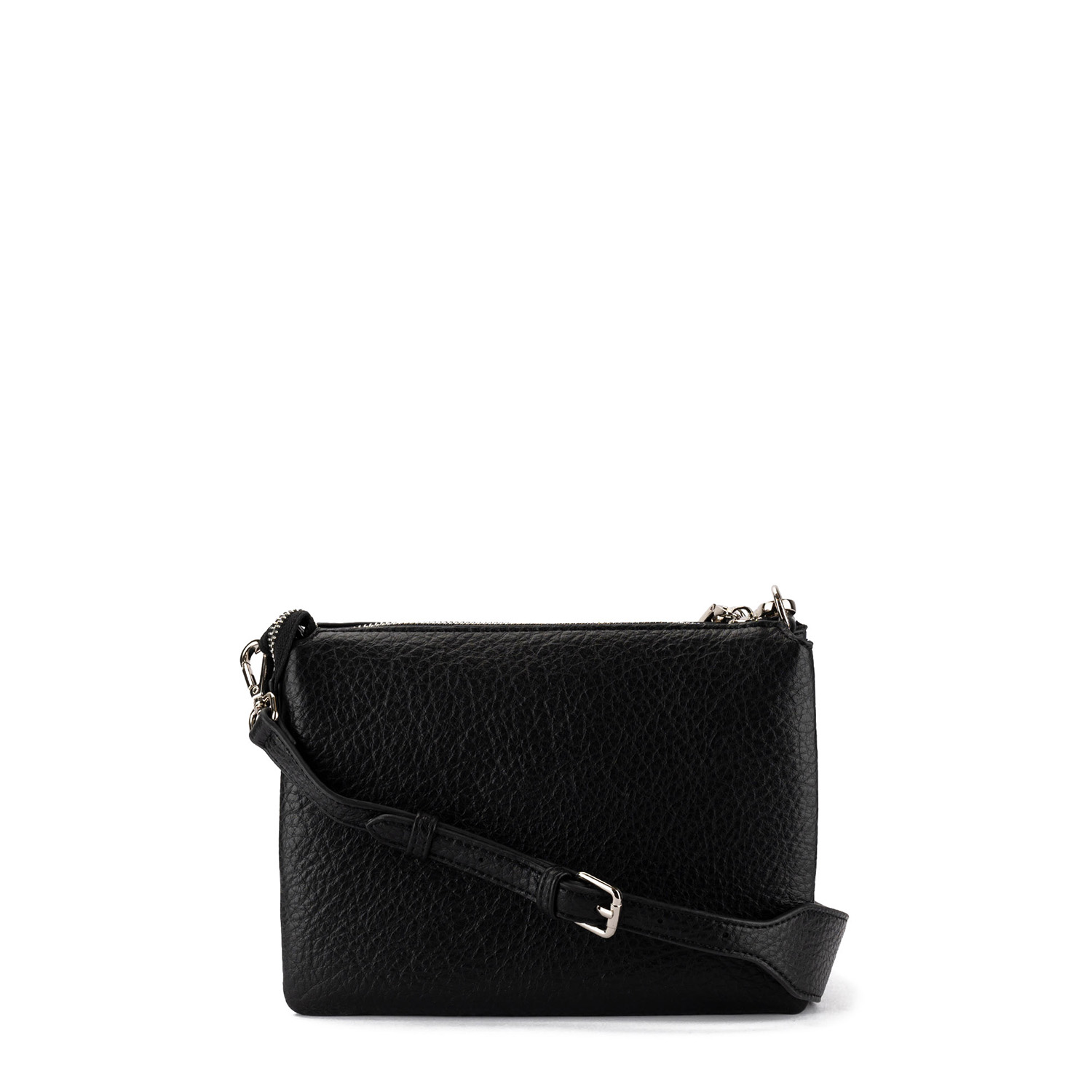 Geantă de damă Vera în culoare neagră elegantă, confecționată din piele ecologică cu textură în relief. Model stilat și practic cu fermoar și baretă reglabilă pentru purtare confortabilă pe umăr. Finisaj stilat cu logo-ul discret al mărcii.