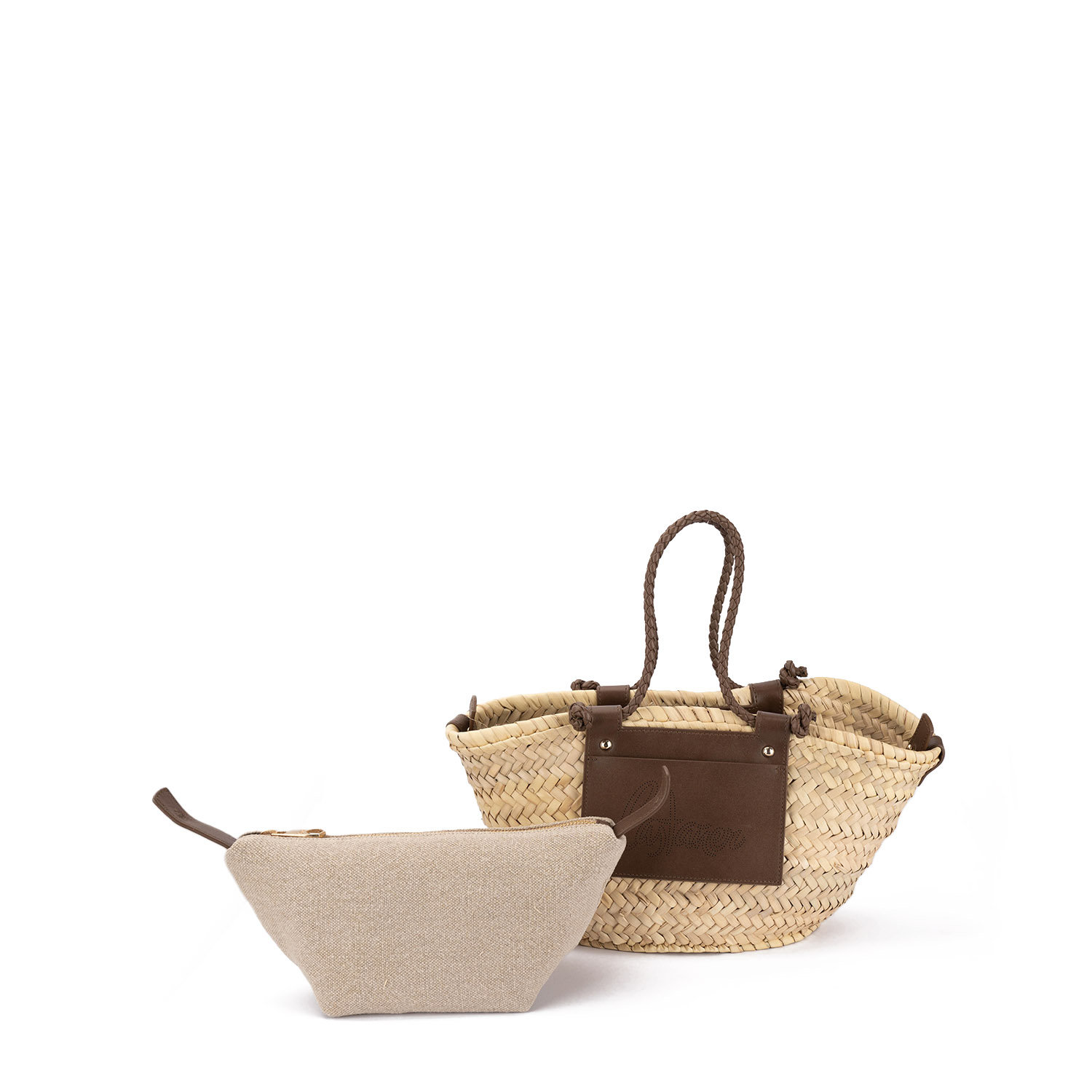 Geantă damă de vară, realizată din paie naturale cu detalii elegante din piele naturală. Dispune de un neseser detașabil, care oferă practicitate și organizare. Modelul este ideal pentru utilizarea zilnică și călătorii. Dispune de mânere scurte confortabile, precum și de un logo perforat estetic.