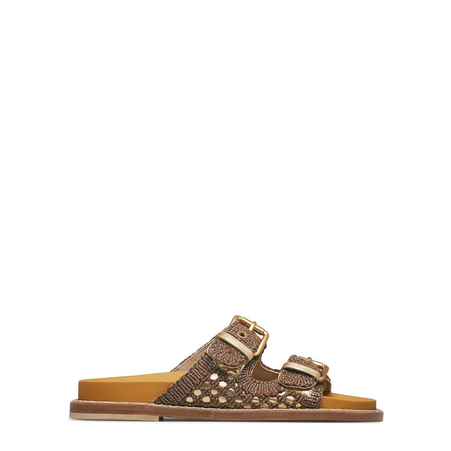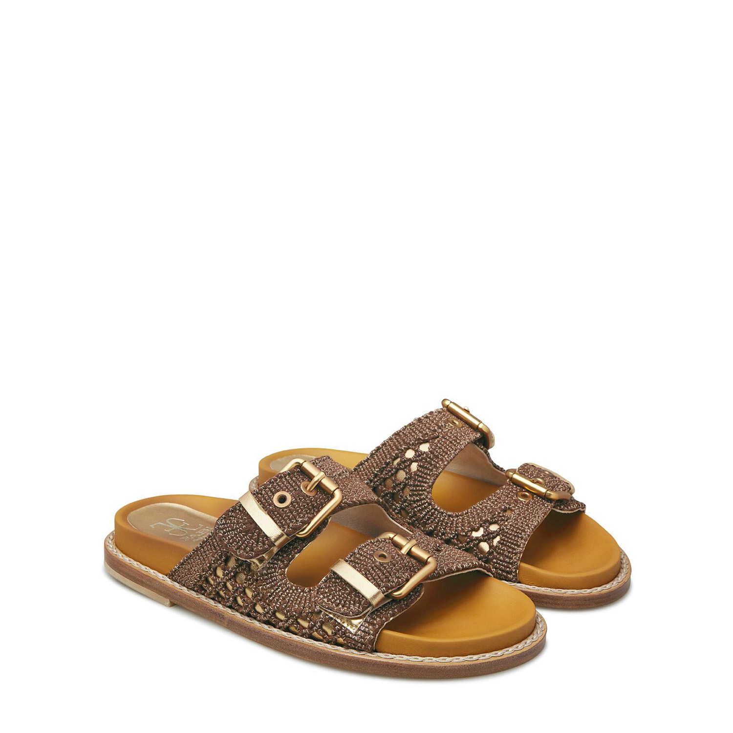 - Talpă interioară din piele laminată de culoare aurie
