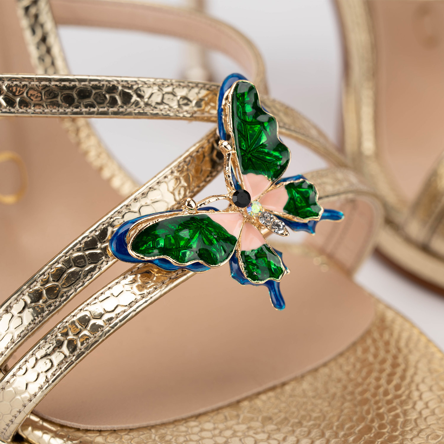 - Sandale damă aurii cu fluturi